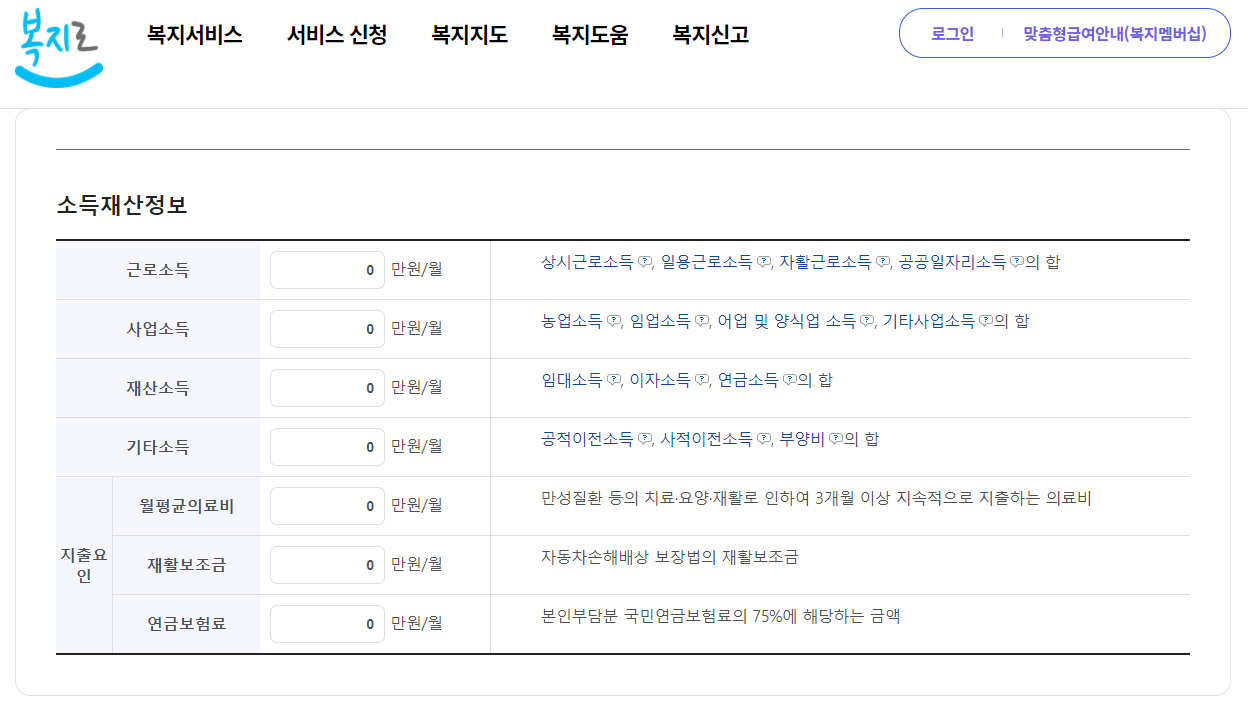 복지로 홈페이지에서 모의계산이 가능하므로 아래의 순서대로 진행하여 소득인정액을 확인해 보시기 바랍니다.