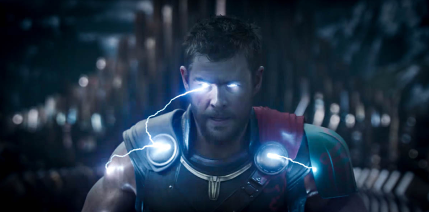 토르 역의 크리스 헴스워스 라그나로크의 임박한 파멸로부터 아스가르드를 구해야 하는 천둥의 신.