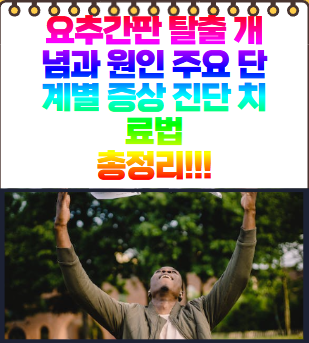 요추간판 탈출증은 흔히 '허리디스크'로 불리는 척추질환 중 하나로, 많은 사람들이 겪게 됩니다. 이 글에서는 요추간판 탈출증의 원인, 증상, 및 치료 방법에 대해 자세하게 알아보도록 하겠습니다.